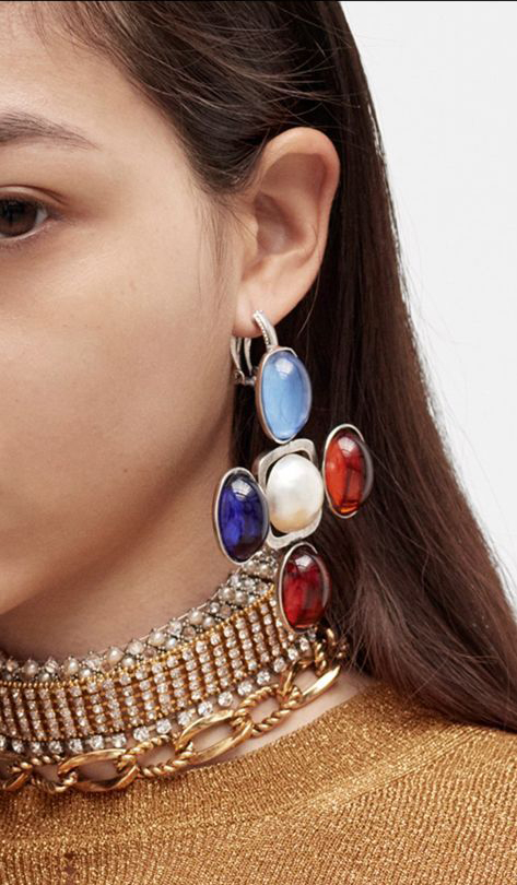 Para complementar los looks de la colección encontramos piezas de bisutería que asemejan las piedras que brillan cual diamantes del lugar por donde caminan las modelos. Gargantillas de eslabones dorados, aretes XL en forma de cruces o pendientes con cristales que llegan hasta la clavícula. Esta temporada la mujer Saint Laurent se impregna de un aura de opulencia máxima.