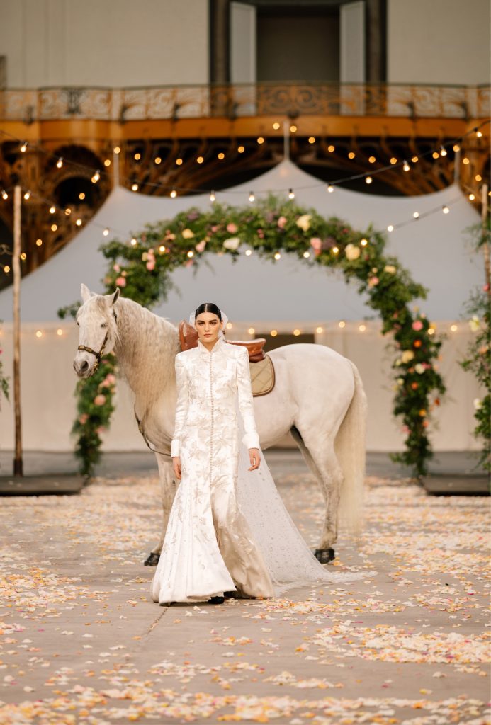 Continuing with the Haute Couture shows this week, today I started my day with another of the brands I absolutely love: Chanel! This season, Chanel’s creative director Virginie Viard was hearing wedding bells on the rue Cambon. As she explained, she knew they couldn’t organise a big show, so she came up with the idea of a small cortege that would come down the stairs of the Grand Palais and pass beneath arches of flowers. Like a family celebration, a wedding. She said there was that spirit at Chanel at the show. Because Chanel is also like a family.