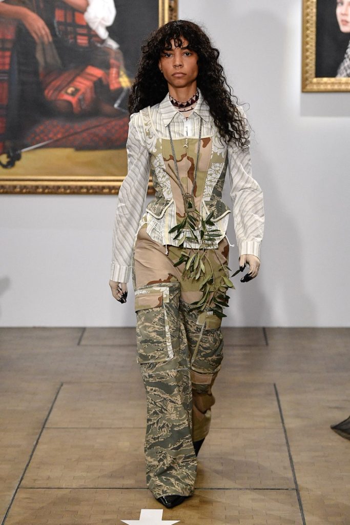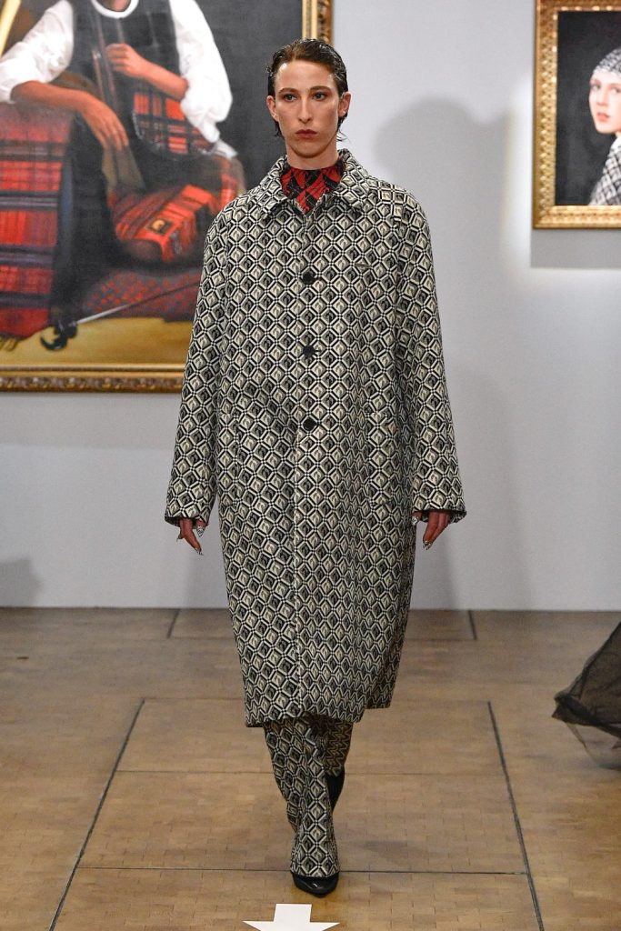 Marine Serre’s Fall 22 collection is full of maximalist garments. We see the stamp of the designer, combining different prints in a single look. We saw influences from British fashion thanks to tartan prints, but not looking stuffy or royal but rebellious and punk spirit. This punk aesthetic gave way to more bizarre and flashy outfits, with more urban prints and finally subtle and delicate flowers. The evolution of the prints was a reflection of the same eclectic designs that we find in the collection.