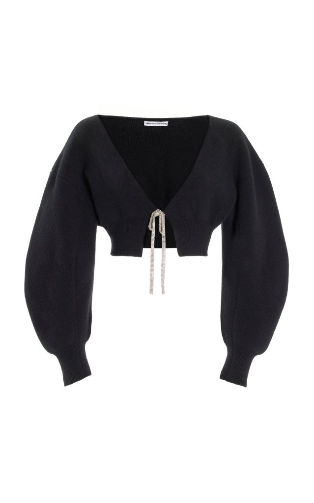 Los destellos tampoco pueden faltar en Navidad, van 100 % de la mano. Alexander Wang tiene un vestido increíble en el que destaca un top de pedrería sobre una falda de seda negra. Lo de Wang son las formas llamativas: ¿qué opinas de este cárdigan con lazo de pedrería? Yo definitivamente lo tengo en mi lista para Santa.
