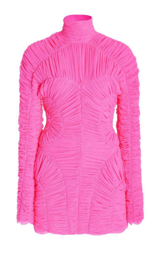 Si quieres algo mucho más casual, Balmain presenta este cárdigan amarillo con sequins doradas que recuerda a un suéter navideño (en versión high fashion). Por el lado contrario, el de la elegancia sofisticada, no puede faltar en tu lista de deseos un clásico: el abrigo negro, como este de Khatie en corte oversize. Aunque, si deseas destacar, mi recomendación personal es este mini vestido Aliétte en rosa brillante, uno de mis colores favoritos.