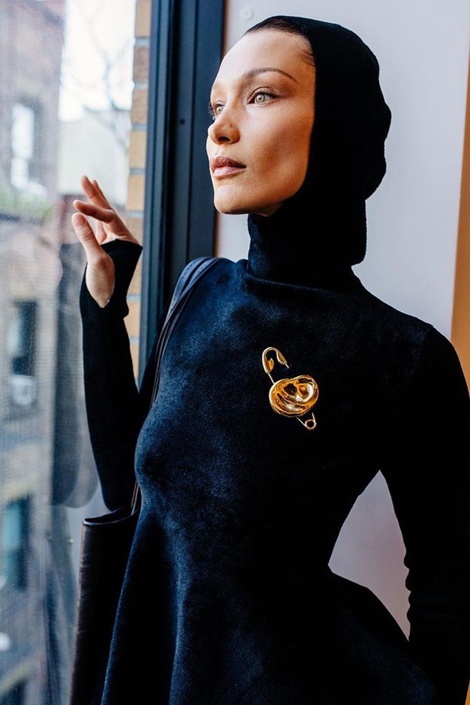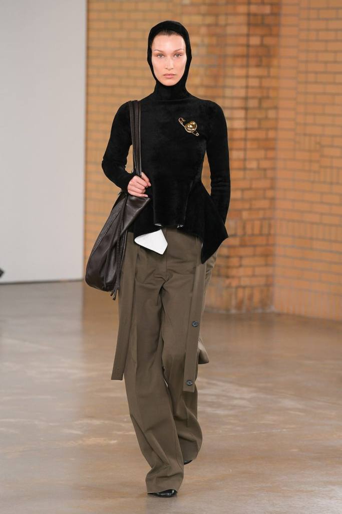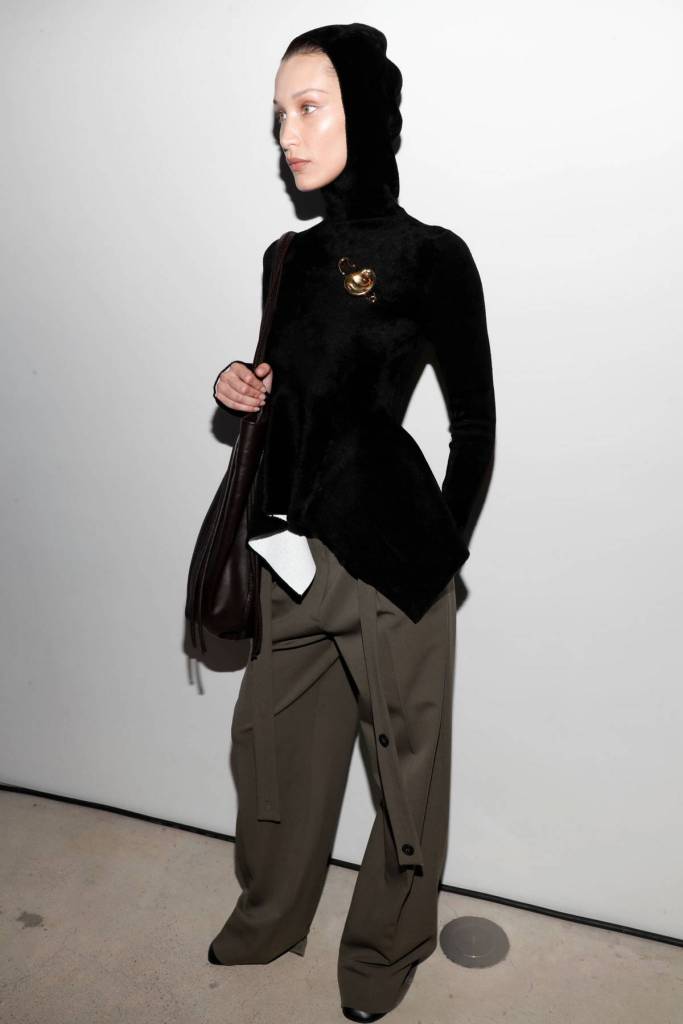 La súper modelo estuvo MIA (missing in action) durante las pasarelas de Primavera 2022, por lo que la gente empezó a preguntarse ¿dónde estaba Bella? Pero esta temporada hizo su regreso triunfal a los desfiles durante la pasarela de Proenza Schouler. Vistiendo una blusa negra asimétrica adornada con un pin en forma de oreja en tamaño XL combinada con unos pantalones baggy en color verde olivo, un par de ballet flats, una bolsa en cuero oversize y un balaclava tejido en color negro. Uno de los looks más memorables de la pasarela, tanto por los accesorios como por la mujer que lo llevaba puesto. Sin duda Bella Hadid dejó claro que es una de las mejores modelos de nuestra época.
