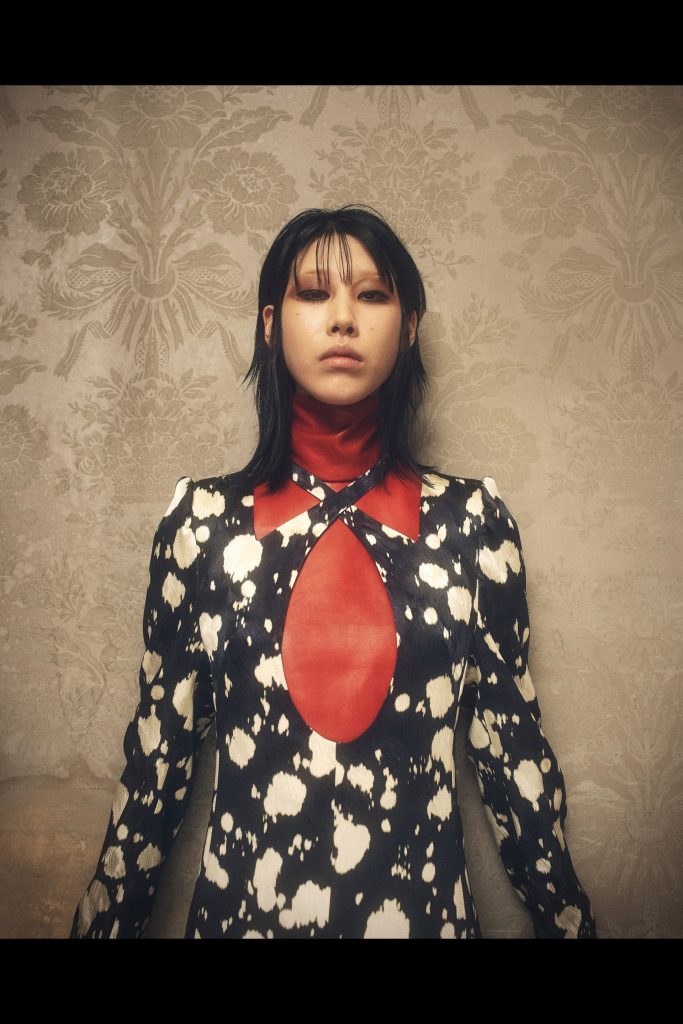 Una colección en la que las prendas parecen obras de arte, los estampados asemejan pinturas que encontramos colgadas en grandes museos alrededor del mundo. Por ejemplo, el abrigo en tonos dorados, que asemeja a las pinturas del pintor austriaco Gustav Klimt, sobre una blusa con cuello de cisne en estampado de leopardo y botas de tacón de charol negro. Ese look es sencillamente hermoso, un pequeño pedazo de opulencia máxima. Y es ese mismo sentimiento que vemos a través de toda la colección, una gran variedad de estampados contrastantes – florales, abstractos, animales – se sobreponen entre sí para crear atuendos que en primera instancia no deberían de funcionar, pero terminan dando una visión de belleza perfecta. Una estética barroca en donde el exceso es la clave. Estos elementos transforman a la ropa en cuasi obras artísticas que cobran vida al sobreponerse en los cuerpos de las modelos.