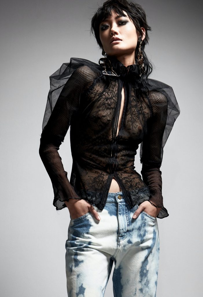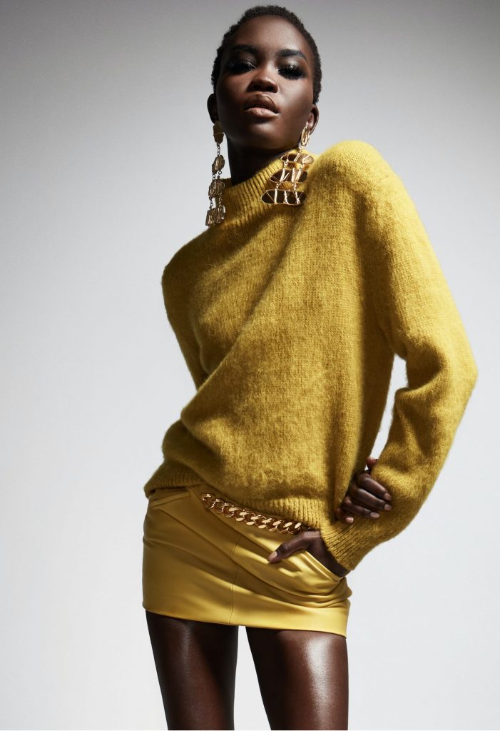 I find this collection like an ode to our inner rockstars, my favorite looks include a shocking pink mini dress in lace paired with blue tights, a black lace jumpsuit, a yellow mohair sweater wore with a mini skirt in the same tone, and an oversized jacket in black velvet. I also have to mention, that I loved the acid wash jeans mixed with a black top with sheer sleeves and details of lace plus fishnet touches.