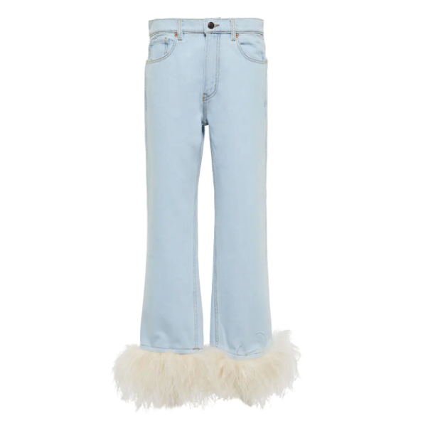 Jeans con dobladillo con plumas, de Magda Butrym