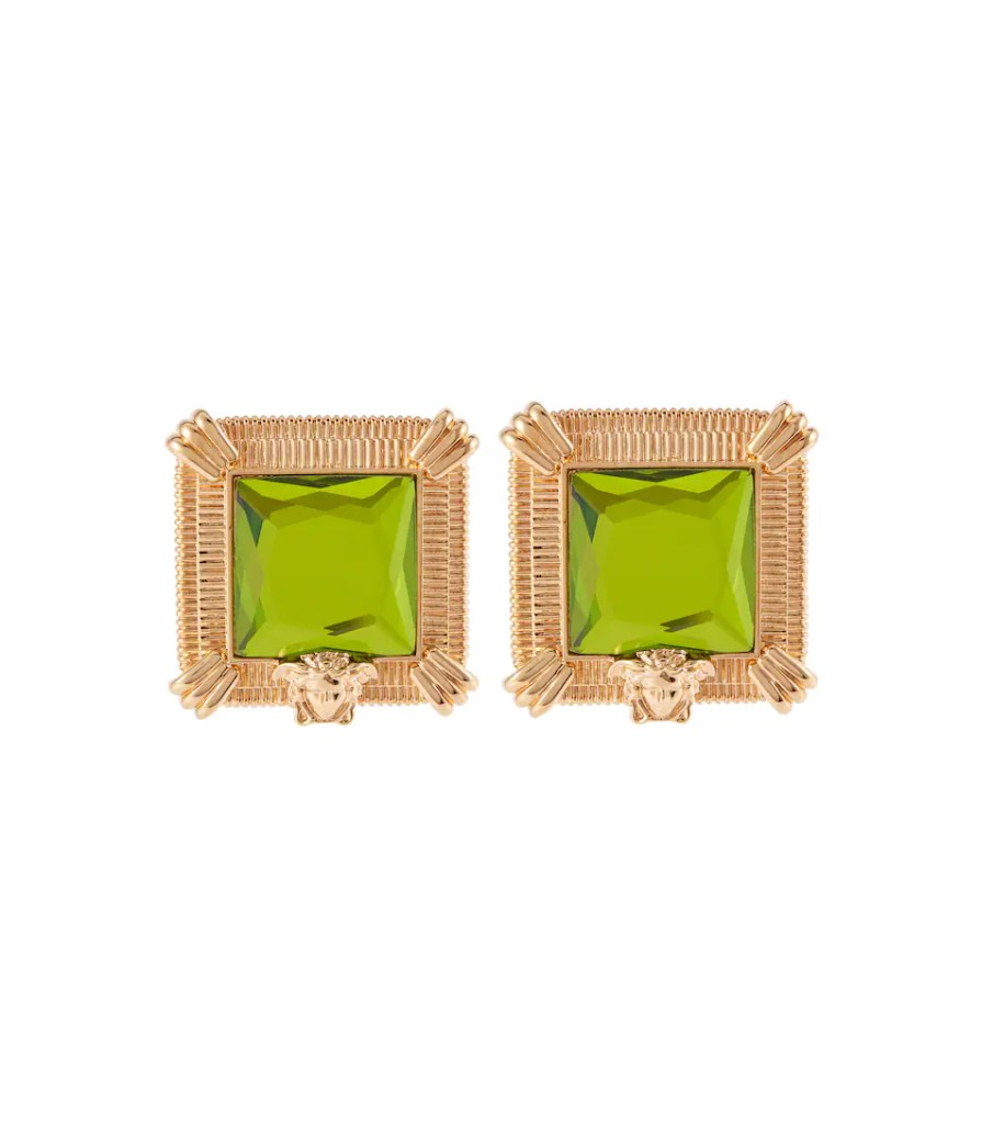 Continuando con los colores llamativos (algo que no puede faltar en la disco), ¿qué opinas de estos aretes Versace en verde? ¿O este blazer de crepé de Alex Perry?