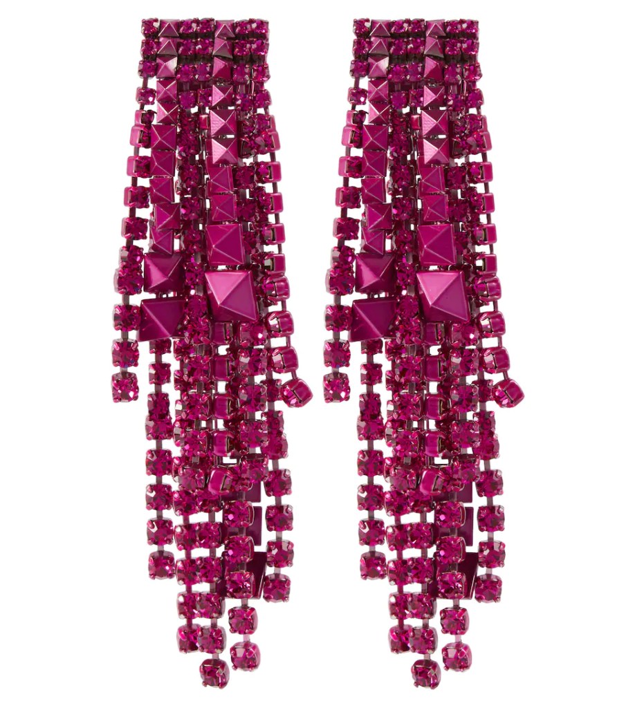 Los accesorios también deben brillar: por ejemplo, estos pendientes de latón y vidrio de Magda Butrym; o, si quieres un color mucho más llamativo, Valentino creó los aretes Brightrain Rockstud en rosa. ¡Ah! Y si quieres combinar tus pendientes con tu calzado, Magda Butrym hizo las botas perfectas para llevar con sus correspondientes aretes, un set que puedes terminar de armar con este choker.