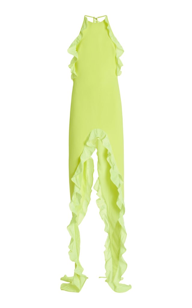 Las formas también deben ser atrevidas: siguiendo con los blazers, Jacquemus tiene esta hermosa pieza asimétrica de lana y elastano, ¿Algo más llamativo? Qué opinas de este mini dress de Zimmermann en dorado y negro, este top Area con forma de flor en rosa brillante que sí o sí atraerá unas cuantas miradas; o qué tal este vestido de David Koma en verde cartuja con holanes con el que estoy obsesionada.